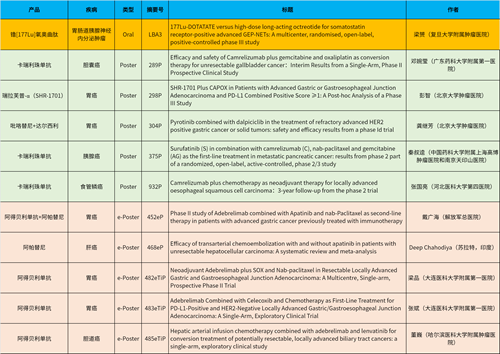 在消化系统肿瘤领域,永利皇宫官网产品相关研究共入选1项最新突破性摘要(LBA)、5项壁报和5项电子壁报,共11项研究。其中阿得贝利单抗入选4项研究、卡瑞利珠单抗入选3项研究。
